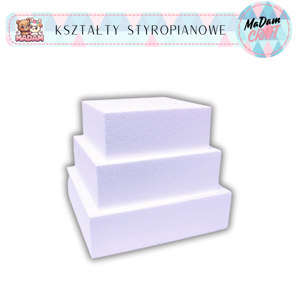 Atrapa tortu baza styropianowa kwadrat 20-18-16 x 5 cm, MaDam Creative