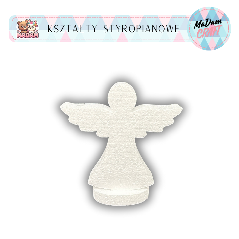 Baza styropianowa Anioł z podstawką 10 cm Boże Narodzenie wzór1, MaDam Creative – stwórz wyjątkowe ozdoby świąteczne DIY