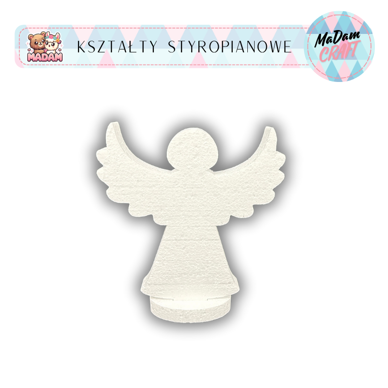 Baza styropianowa Anioł z podstawką 20 cm Boże Narodzenie wzór2, MaDam Creative – stwórz wyjątkowe ozdoby świąteczne DIY