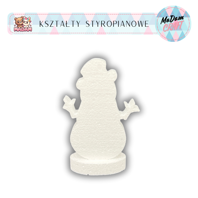 Baza styropianowa Bałwan z podstawką 10 cm Boże Narodzenie wzór2, MaDam Creative – stwórz wyjątkowe ozdoby świąteczne DIY