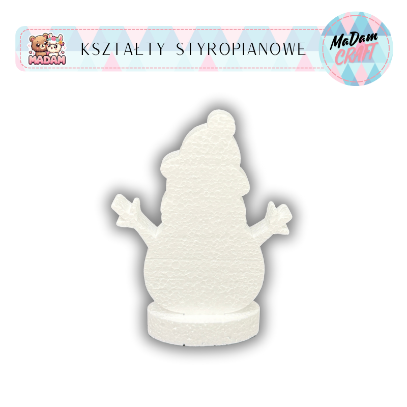 Baza styropianowa Bałwan z podstawką 20 cm Boże Narodzenie wzór1, MaDam Creative – stwórz wyjątkowe ozdoby świąteczne DIY
