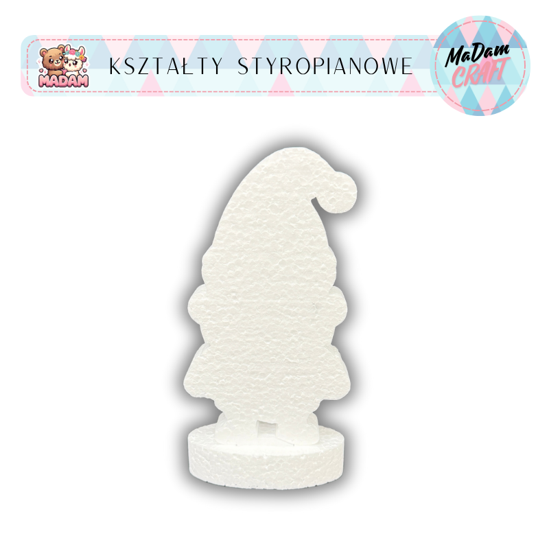 Baza styropianowa Gnom z podstawką 20 cm Boże Narodzenie wzór1, MaDam Creative – stwórz wyjątkowe ozdoby świąteczne DIY