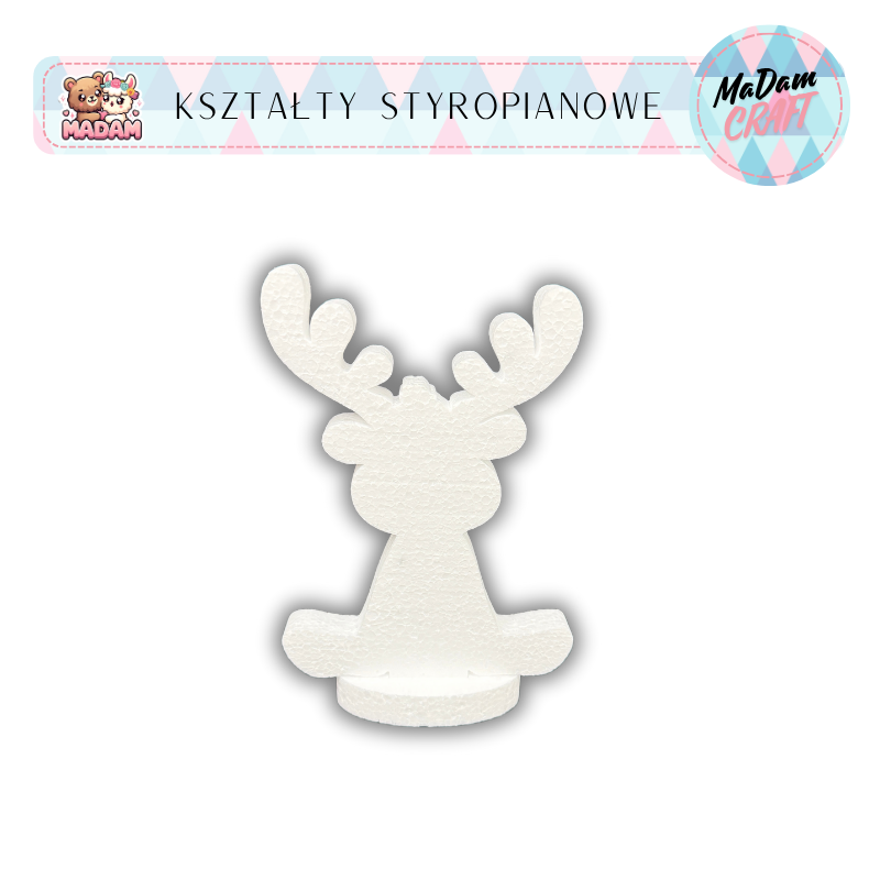 Baza styropianowa Renifer z podstawką 10 cm Boże Narodzenie wzór1, MaDam Creative – stwórz wyjątkowe ozdoby świąteczne DIY