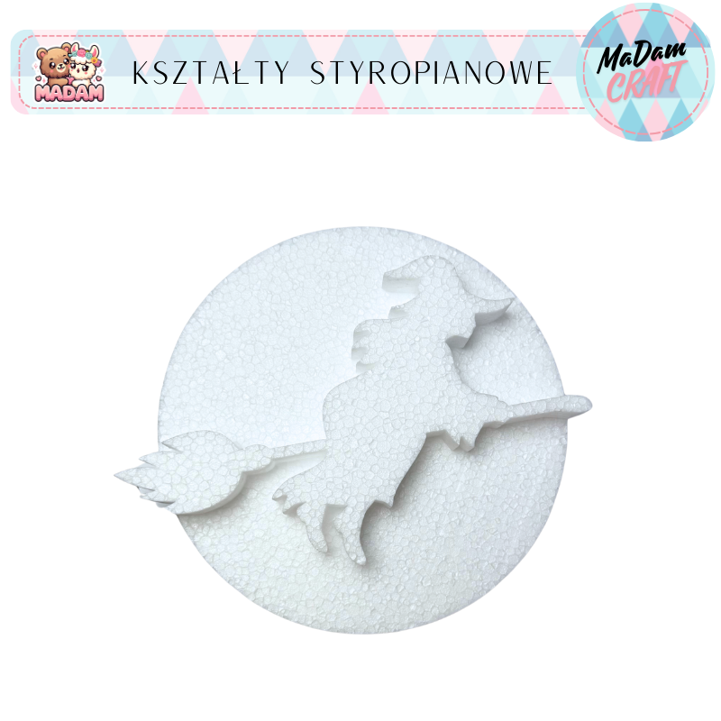 Baza styropianowa czarownica na miotle koło 20x2 cm Halloween, MaDam Creative