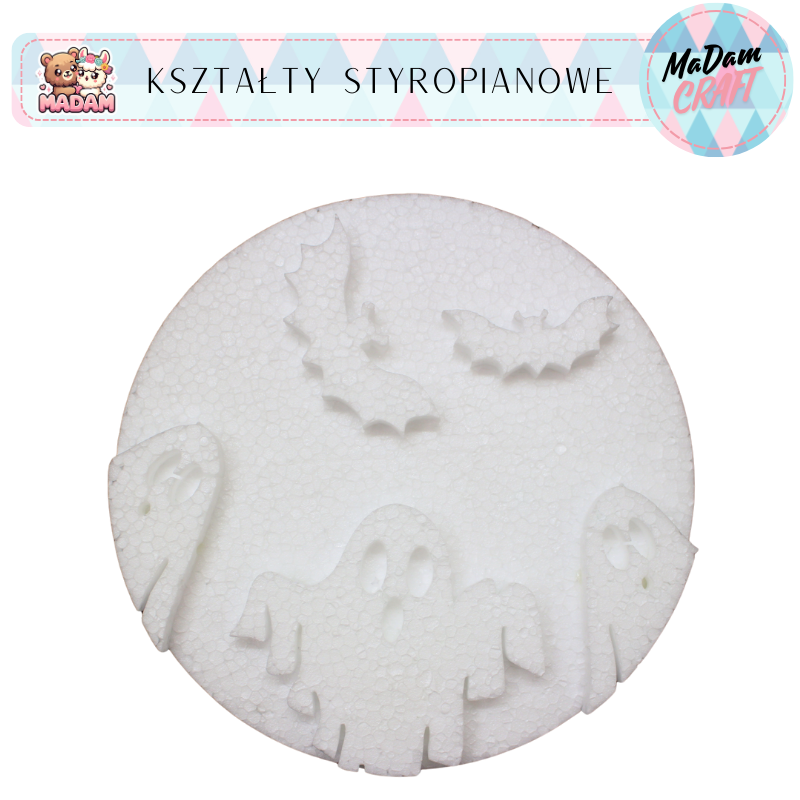 Baza styropianowa duchy i nietoperze koło 20x2 cm Halloween, MaDam Creative