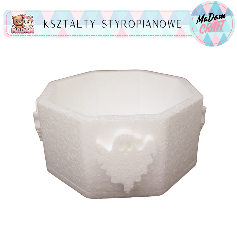 Baza styropianowa pojemnik ośmiokąt oktagon duchy 23x11 cm Halloween, MaDam Creative