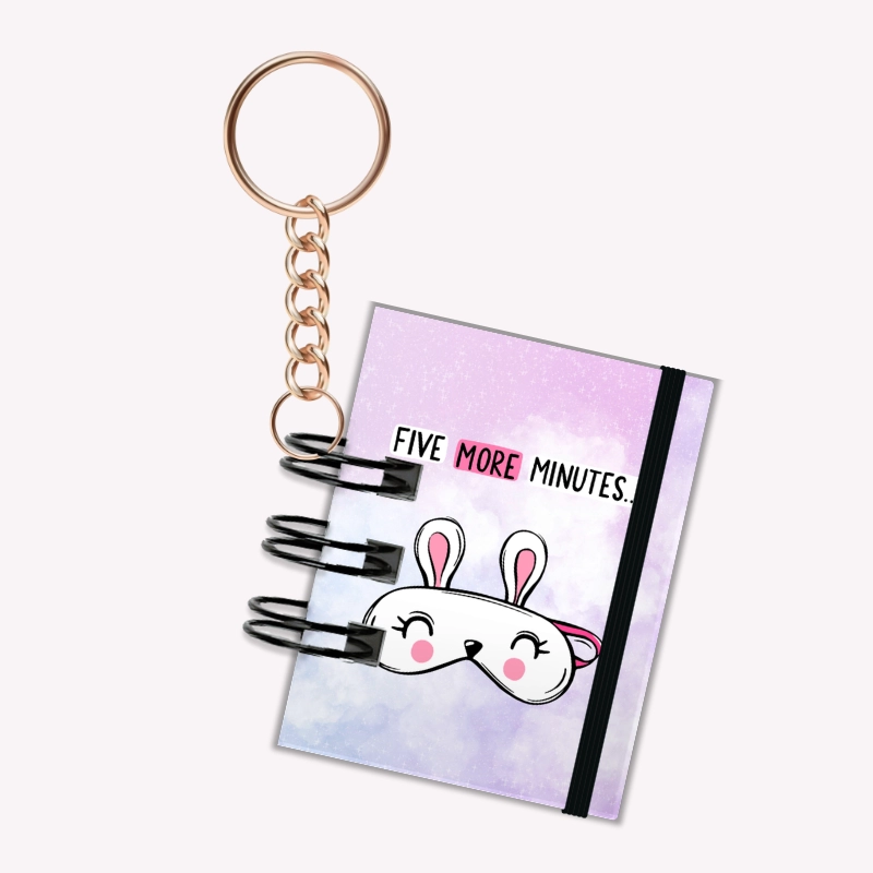 Breloczek mini notesik na gumkę Królik Five More Minute 5x6 cm 50k gładki, MaDam Creative