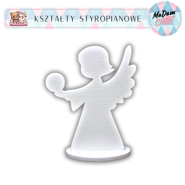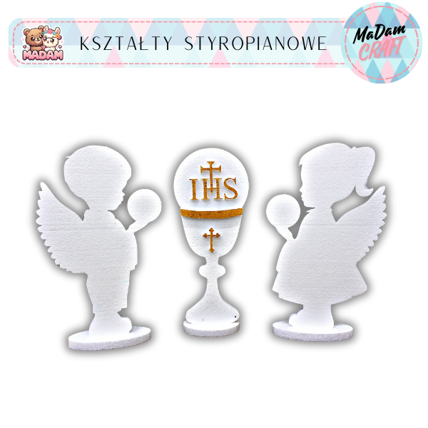 Dekoracja Anioł dzieczynka z podstawką Komunia 47x37 cm styropian, MaDam Creative