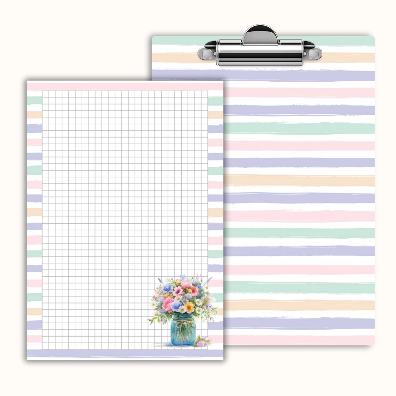 Deska z klipem magnetyczna A6 z notesem Bukiet Kwiatów Pastelowe Paski MaDam Creative