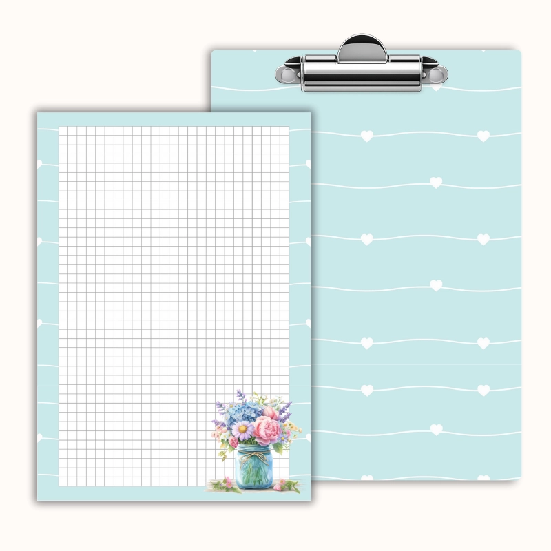 Deska z klipem magnetyczna A6 z notesem Bukiet Kwiatów w Słoiku Niebieski MaDam Creative