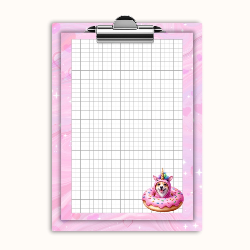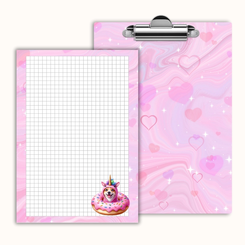 Deska z klipem magnetyczna A6 z notesem Pies Jednorożec Donut Różowy MaDam Creative