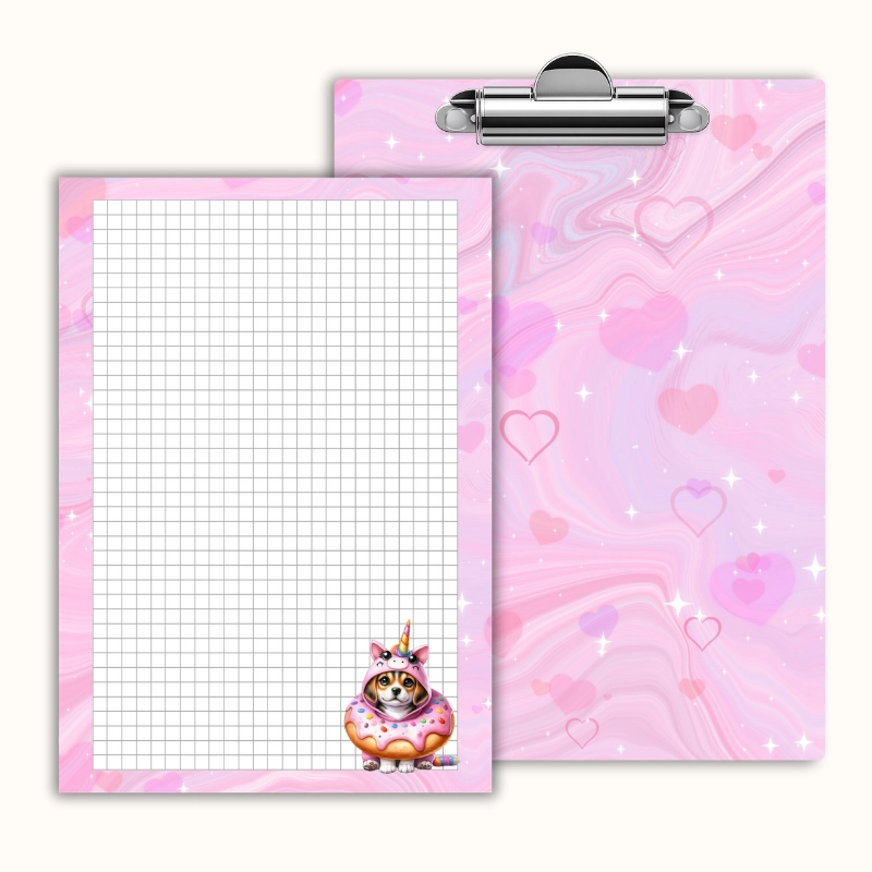 Deska z klipem magnetyczna A6 z notesem Piesek w Donucie Jednorożec MaDam Creative