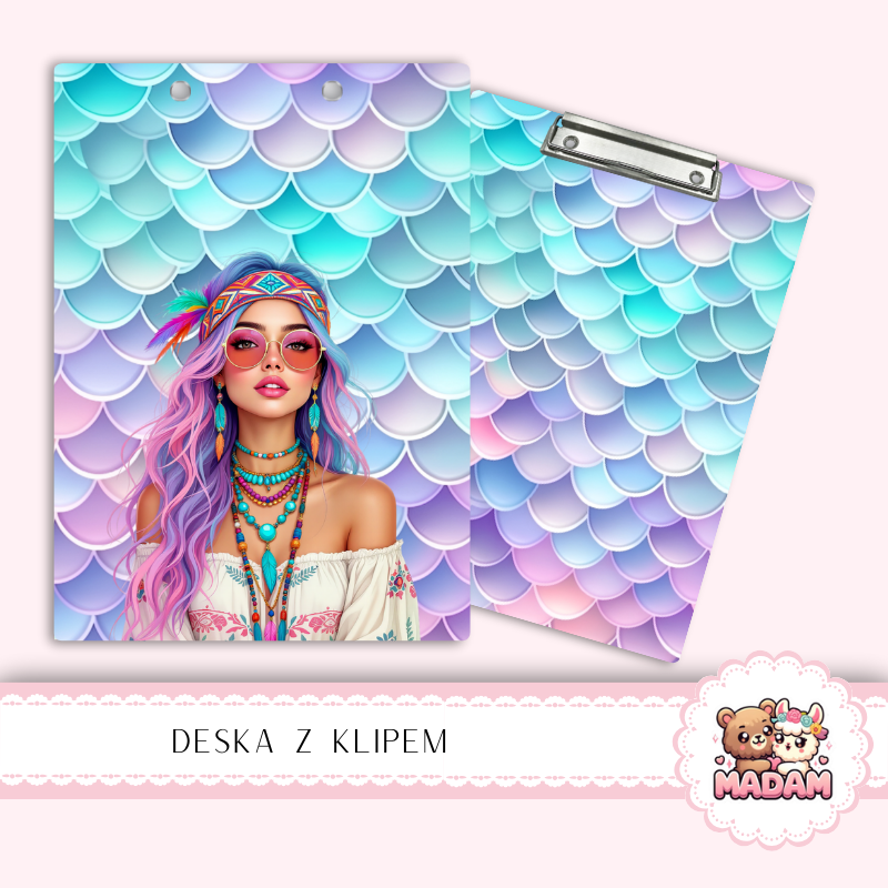 Deska z klipem podkładka A5 Dziewczyna Boho Różowe Włosy MaDam Creative