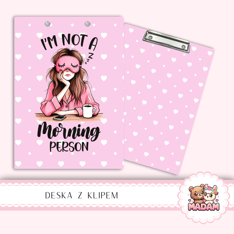 Deska z klipem podkładka A5 I’m Not a Morning Person Dziewczyna MaDam Creative