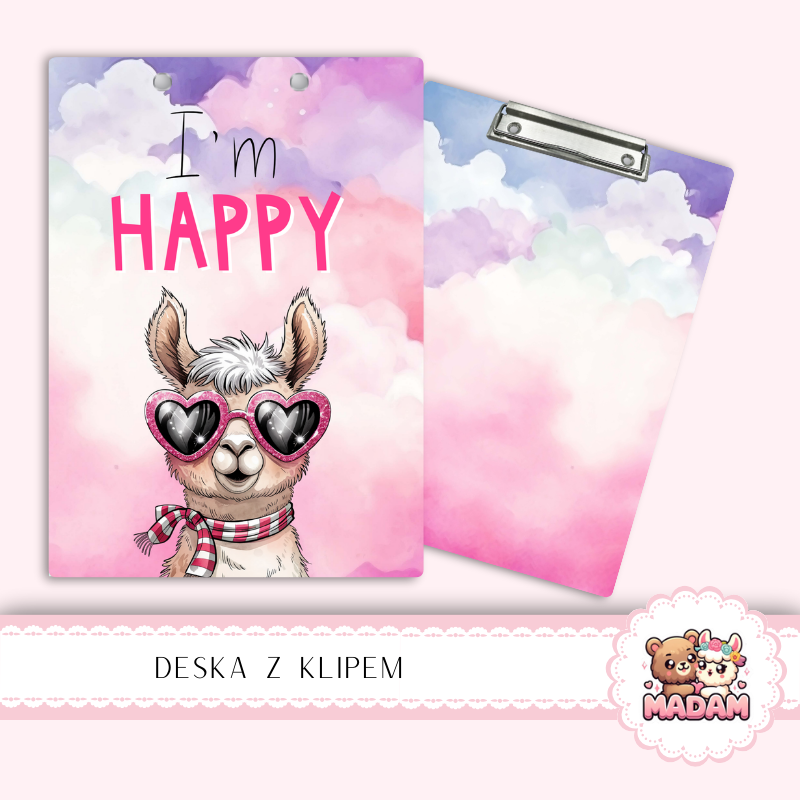 Deska z klipem podkładka A5 Lama I’m Happy Różowy Pastelowy MaDam Creative