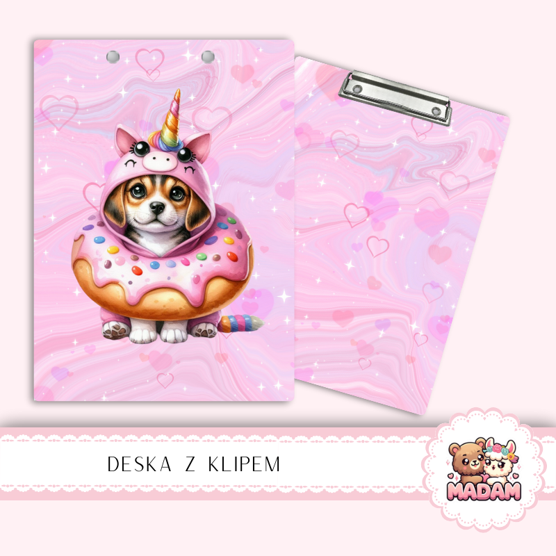 Deska z klipem podkładka A5 Piesek w Donucie Jednorożec MaDam Creative