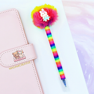 Długopis sznurkowy z pomponem Tęczowy Królik, MaDam