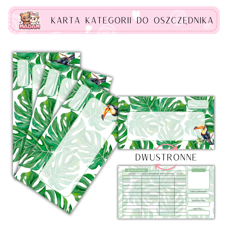 Karta Kategorii do oszczędnika kopert organizera Jungle Monstera 1 sztuka 8x15, MaDam