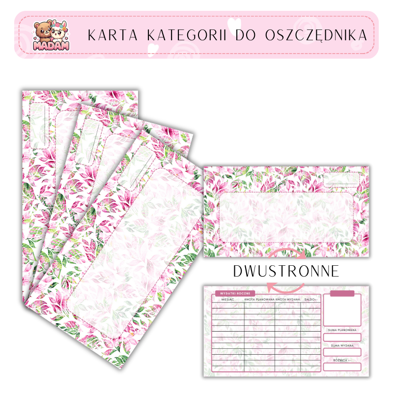 Karta Kategorii do oszczędnika kopert organizera Kwiaty 1 sztuka 8x15, MaDam