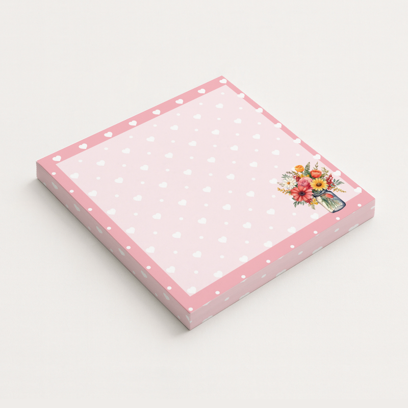Karteczki do notowania 7,5x7,5 cm 50 szt Kwiaty w Słoiku Różowy Pastelowy MaDam Creative