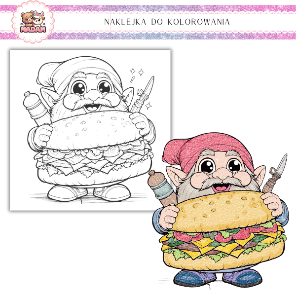Kolorowanka Samoprzylepna 13x13 dla dzieci Damian Skrzat Głodomor MaDam Creative