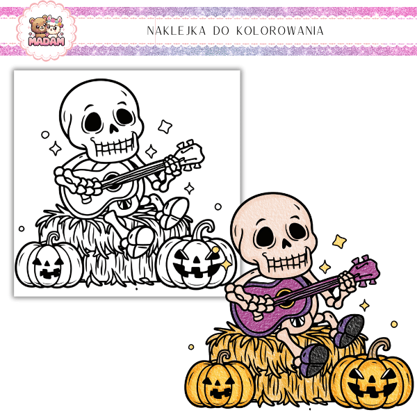 Kolorowanka Samoprzylepna 13x13 dla dzieci Halloween Szkielet MaDam Creative