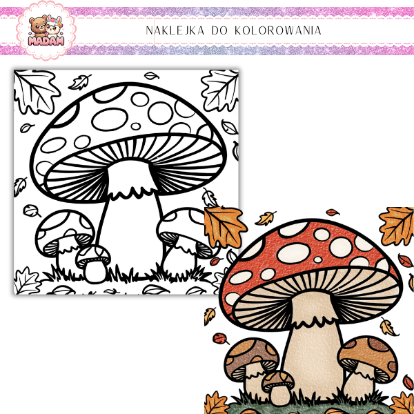 Kolorowanka Samoprzylepna 13x13 dla dzieci Jesień Jesienne Muchomorki MaDam Creative