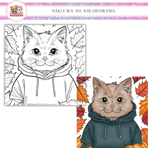 Kolorowanka Samoprzylepna 13x13 dla dzieci Jesień Kot Hoodie Party MaDam Creative