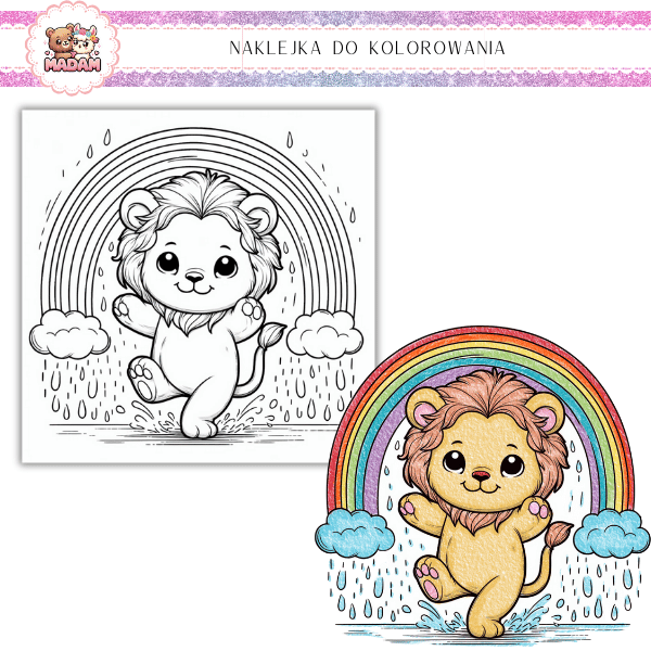 Kolorowanka Samoprzylepna 13x13 dla dzieci Lew Tęcza MaDam Creative