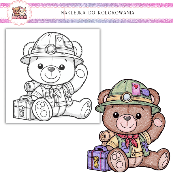 Kolorowanka Samoprzylepna 13x13 dla dzieci Miś Podróżnik MaDam Creative