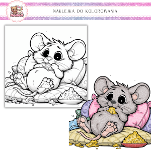 Kolorowanka Samoprzylepna 13x13 dla dzieci Mysz - wieczorny seans serialowy. MaDam Creative