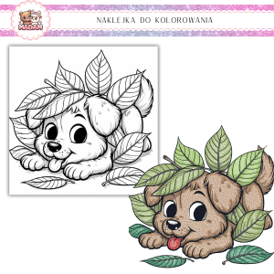 Kolorowanka Samoprzylepna 13x13 dla dzieci Pies zabawy w liściach. MaDam Creative