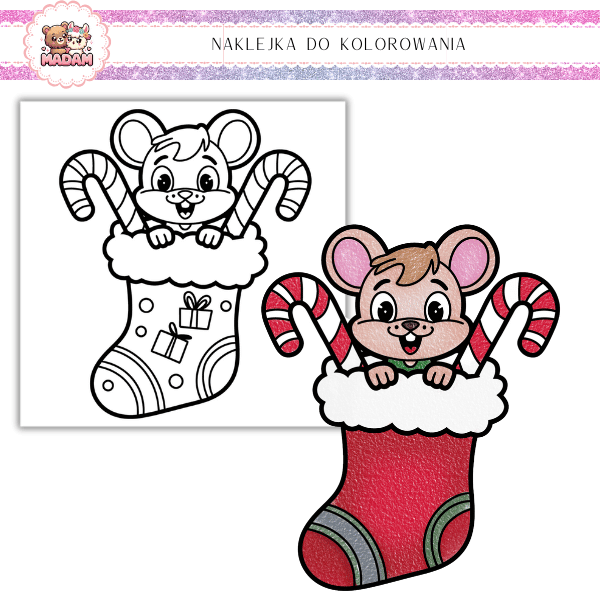 Kolorowanka Samoprzylepna 13x13 dla dzieci Świąteczna Skarpeta MaDam Creative
