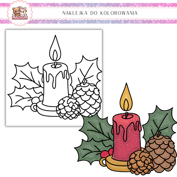 Kolorowanka Samoprzylepna 13x13 dla dzieci Zimowy Stroik, MaDam Creative