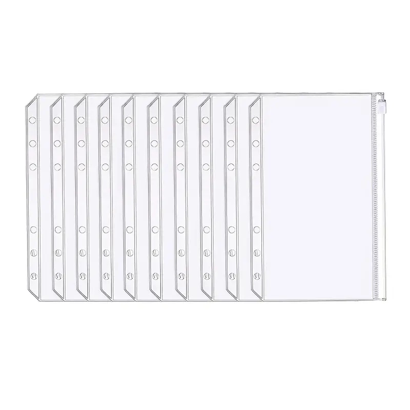 - 10 sztuk przezroczystych kopert z zamkiem błyskawicznym A6 z 6-otworową konstrukcją, zapewniające maksymalną funkcjonalność