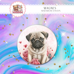 Magnes na lodówke 58mm MaDam Piesek Mops Miłosny – Najwierniejszy mopsik, który strzeże miłości!