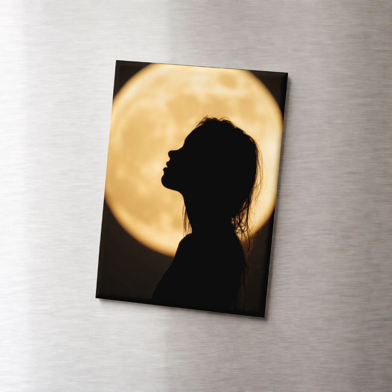 Magnes na lodówkę Dziewczyna na tle złotego księżyca MaDam Creative