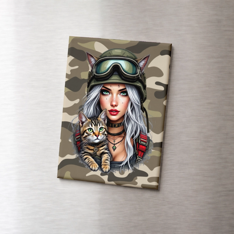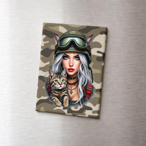 Magnes na lodówkę Dziewczyna z Kotem Militarne Boho MaDam Creative
