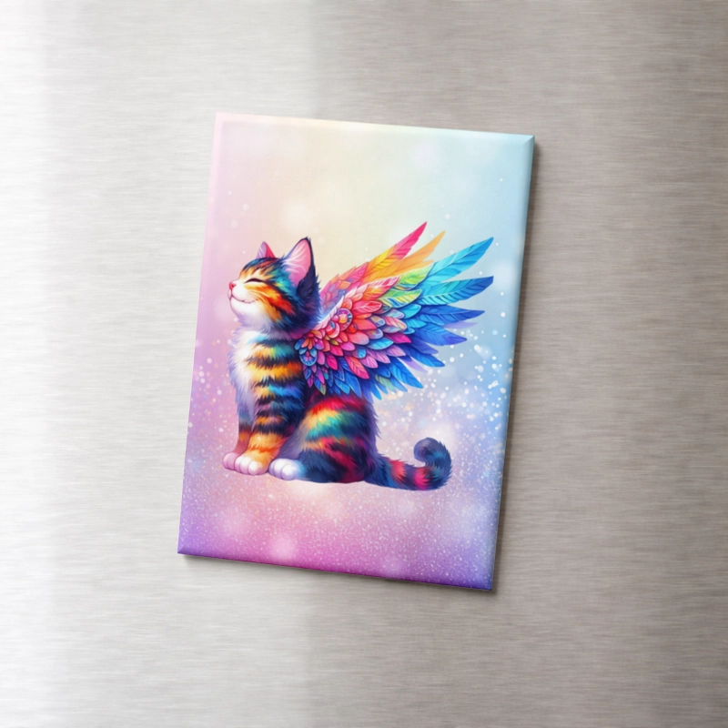 Magnes na lodówkę Kot Tęczowe Skrzydła Pastelowy MaDam Creative