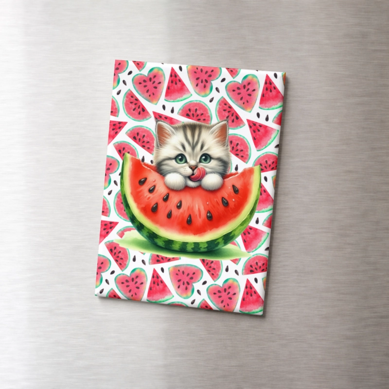 Magnes na lodówkę Kot z Arbuza Owocowy Pastelowy MaDam Creative