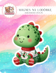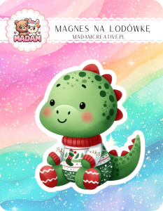 Magnes na lodówkę MaDam Dinozaur Rex – Świąteczny bohater w ciepłym swetrze – dinozaur, który kocha zimowe wieczory!
