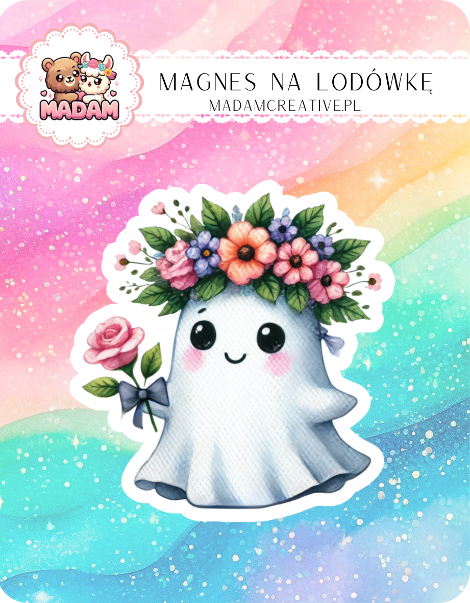 Magnes na lodówkę MaDam Duszek Lily – Kwiatowy duch z sercem na dłoni – nawet duchy potrzebują lodówki!