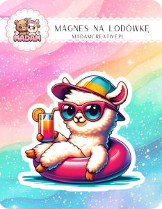 Magnes na lodówkę MaDam Lama Ma na wakacjach – W słońcu, na materacu – życie to plaża!