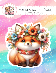 Magnes na lodówkę MaDam Lisiczka Lena – Kwietny wianek, ale w głowie same psoty – modna i figlarna!