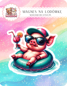Magnes na lodówkę MaDam Świnka Zygmunt – Pić drinka i leżeć w wodzie? To styl życia!