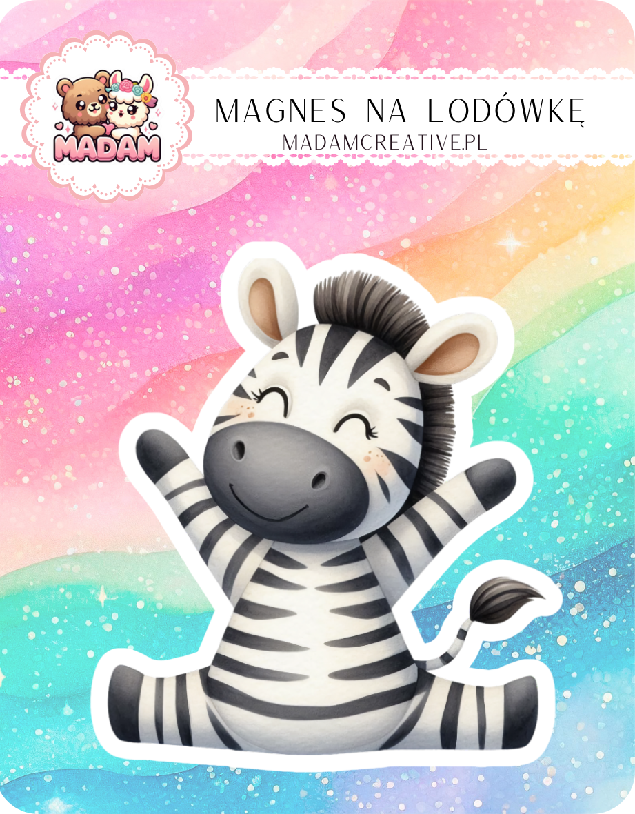 Magnes na lodówkę MaDam Zebra Zuzia – Skakanie po dżungli w czarno-białych paskach to jej codzienność!