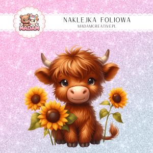 Naklejka Foliowa Brązowa Krówka z Słonecznikami – Polny Skarb z Charakterem! Madam