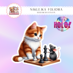 Naklejka Foliowa Holograficzna Kot z Myszką – Szachowy Mistrz Błysku! Madam