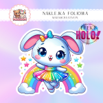 Naklejka Foliowa Holograficzna Króliczek z Tęczą – Tęczowe Pląsy i Radość! Madam
