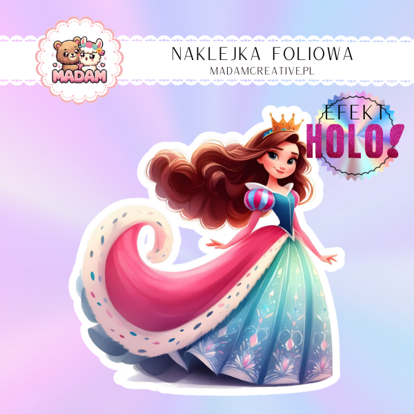Naklejka Foliowa Holograficzna Księżniczka z Trenem – Blask w Każdym Kroku! Madam